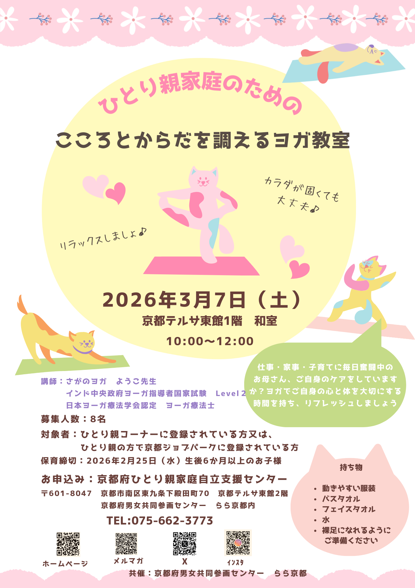 お母さん、ご自身のケアをしていますか?ヨガでご自身の心と体を大切にする時間を持ち、リフレッシュしましょう!